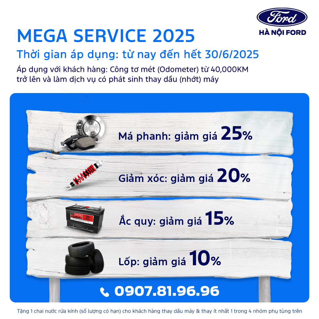 MEGA SERVICE 2025 – ƯU ĐÃI ĐẶC BIỆT DÀNH CHO XE FORD CHẠY TRÊN 40.000KM