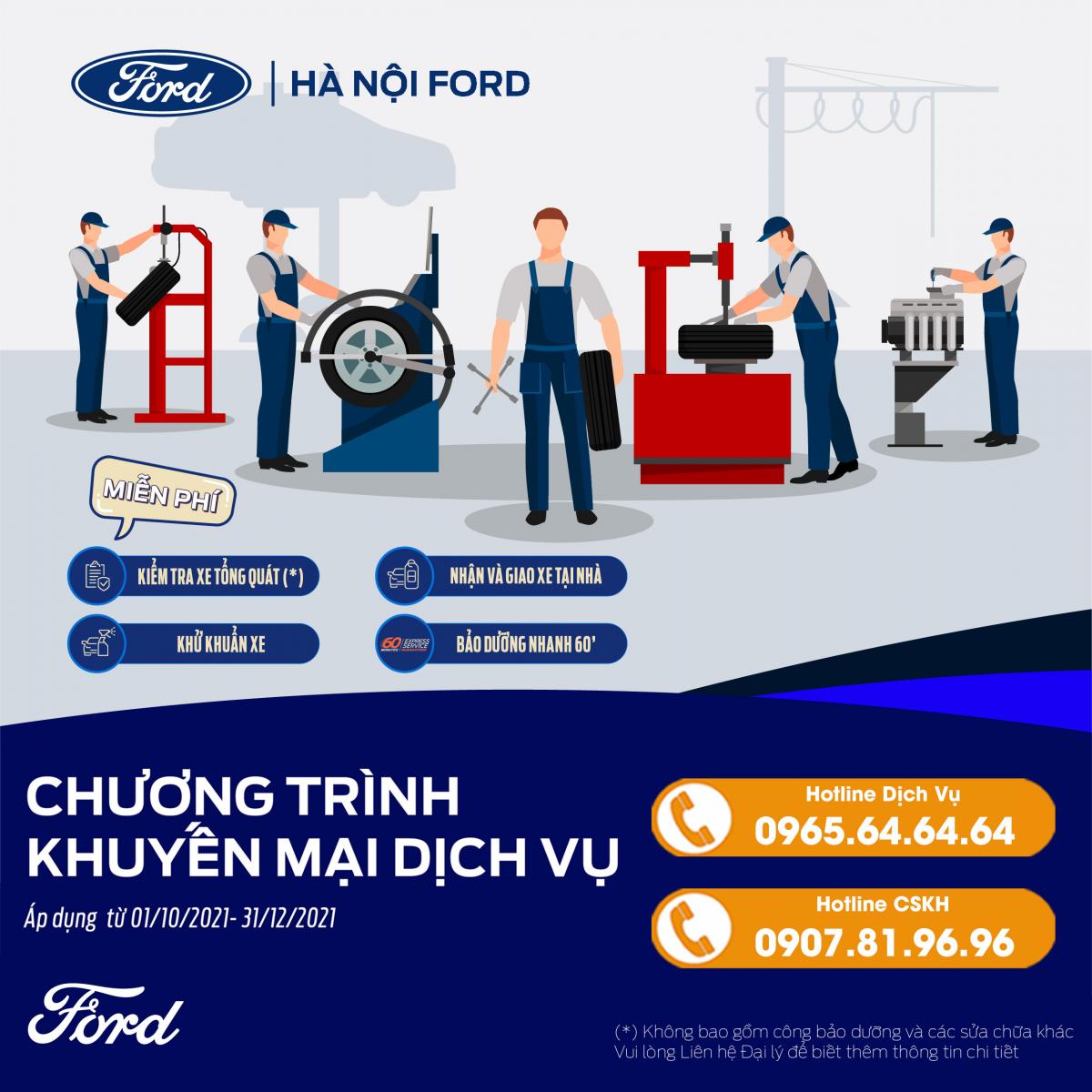 Để đồng hành cùng quý khách hàng trên mọi hành trình, Ford Việt Nam cùng Hà Nội Ford trân trọng giới thiệu chương trình khuyến mại Dịch vụ với nội dung cụ thể như sau:
