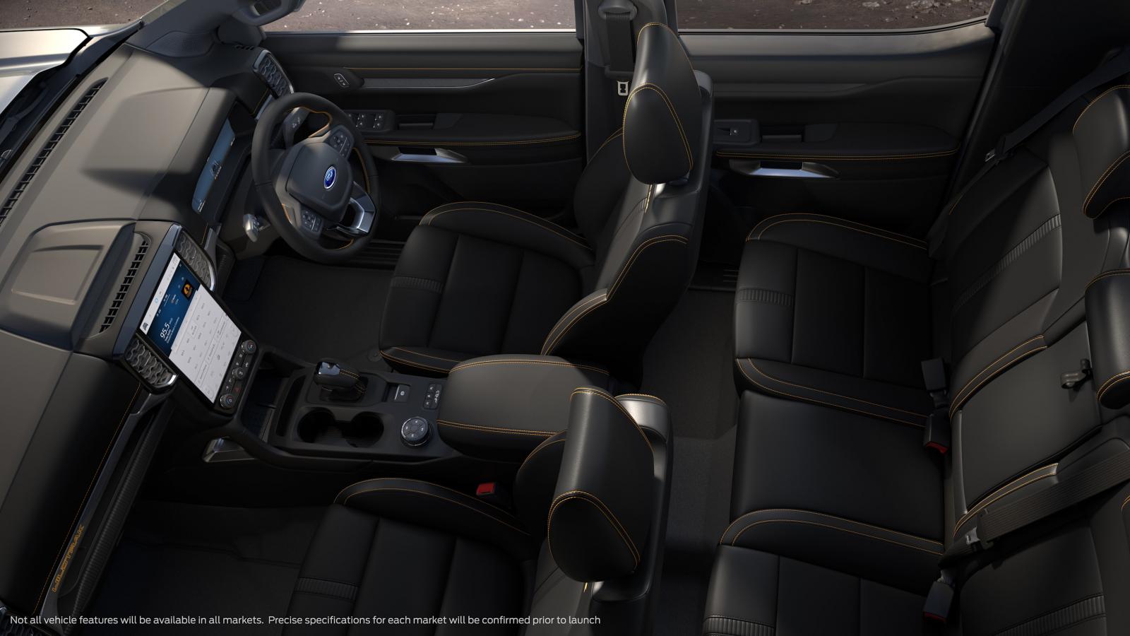 Mạnh mẽ như Ranger ở bên ngoài, Tran và nhóm của anh ấy đã làm việc để nâng cấp nội thất hơn nữa. Tập trung vào việc thiết lập một sự hài hòa thị giác mạnh mẽ để bổ sung cho ngoại thất bền bỉ và mạnh mẽ, chiếc xe tải thế hệ tiếp theo này áp dụng thiết kế “từ bờ biển đến bờ biển” để có cảm giác rộng rãi hơn. Một số dấu hiệu thiết kế cũng được chuyển từ ngoại thất: các cánh thông gió có thiết kế tương tự như ở lưới tản nhiệt phía trước, và một số phương pháp xử lý bề mặt bên ngoài đã được điều chỉnh để sử dụng cho nội thất.