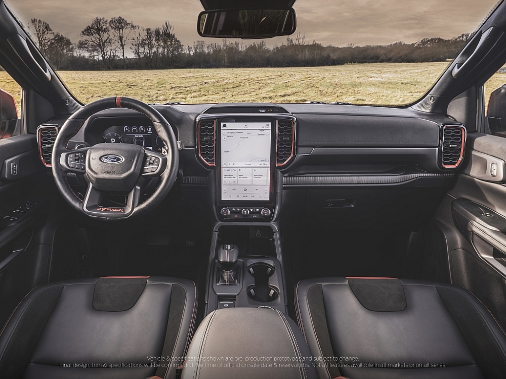 Ranger Raptor có một cabin kỹ thuật số hoàn toàn, với cụm đồng hồ kỹ thuật số 12,4 inch độ phân giải cao và màn hình cảm ứng trung tâm 12,1 inch. Hệ thống giải trí và kết nối SYNC 4A®i thế hệ mới của Ford, hỗ trợ kết nối điện thoại thông minh không dây Apple và Android, đi kèm là hệ thống âm thanh Bang & Olufsen®ii 8 loa.