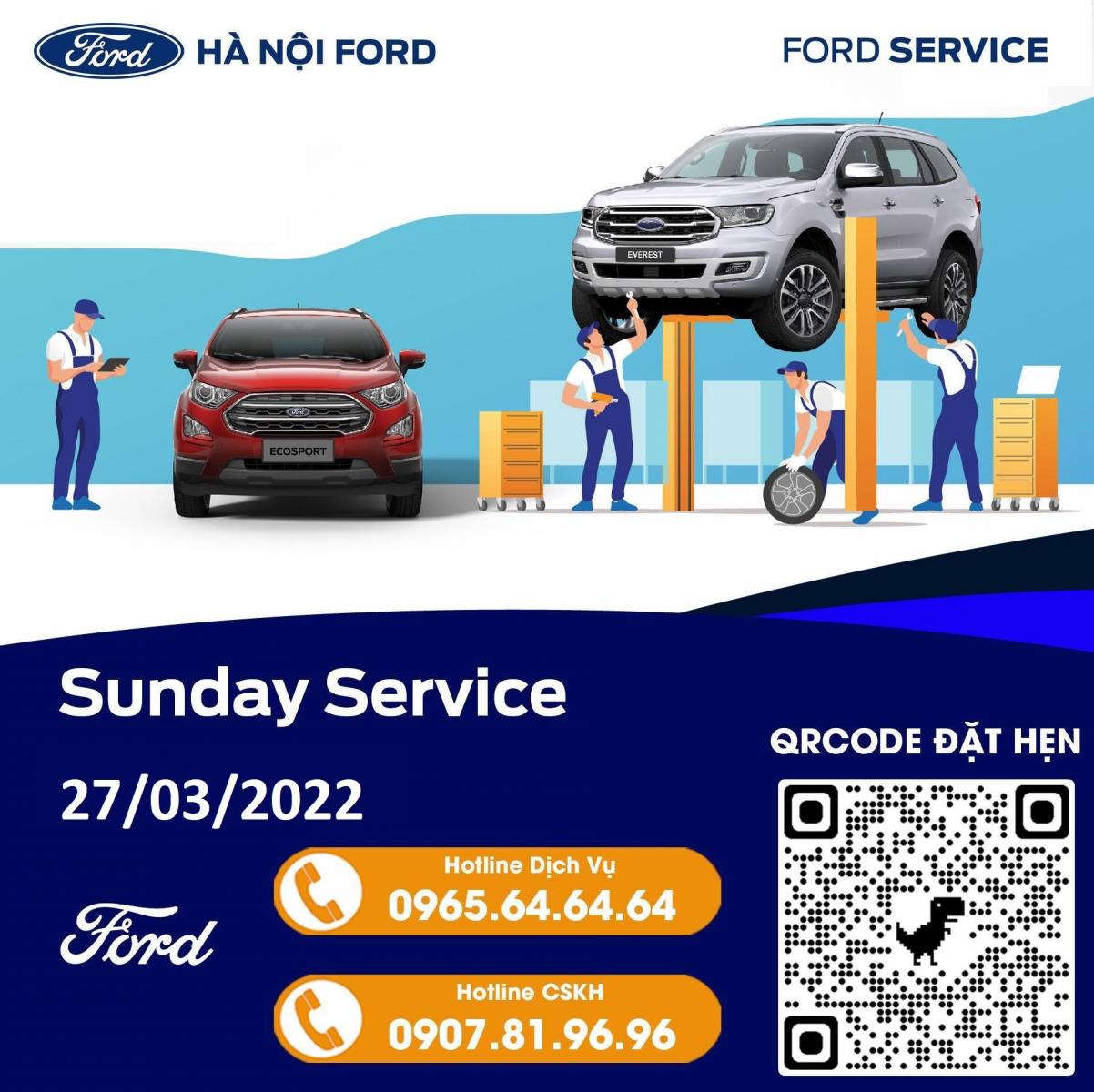 Nhằm đáp ứng nhu cầu bảo dưỡng và sửa chữa xe, Hà Nội Ford tăng cường phục vụ Quý khách hàng qua chương trình SUNDAY SERVICE - DỊCH VỤ NGÀY CHỦ NHẬT vào ngày 27/03/2022.