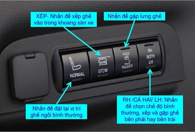 Công dụng: Hỗ trợ việc gập ghế sau nhẹ nhàng và có nhiều chế độ gập để phù hợp với từng hoàn cảnh di chuyển của xe.