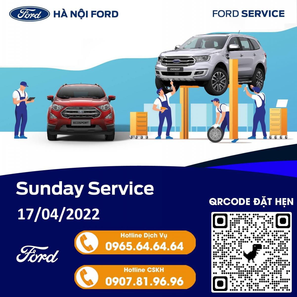 Nhằm đáp ứng nhu cầu bảo dưỡng và sửa chữa xe, Hà Nội Ford tăng cường phục vụ Quý khách hàng qua chương trình "SUNDAY SERVICE - DỊCH VỤ NGÀY CHỦ NHẬT" vào ngày 17/04/2022.