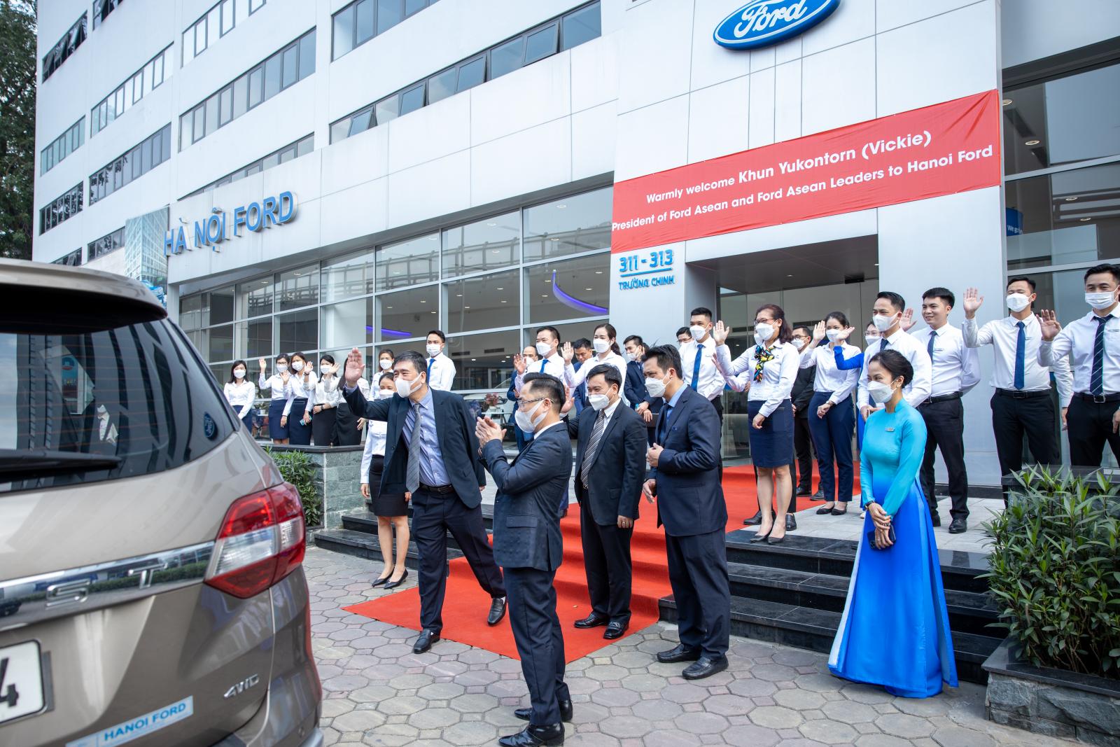 Chiều ngày 27/04/2022, Hà Nội Ford vinh dự tiếp đón đoàn lãnh đạo cấp cao cấp tập đoàn Ford gồm có bà Yukontorn Wisadkosin (Vickie) - Chủ tịch Ford ASEAN, bà Wanida Paisal - Giám Đốc Tài chính Ford ASEAN, Ông Rajesh Achuthan - Giám Đốc Tiếp thị & Bán hàng Ford ASEAN, Ông Ruchik Shah - Tổng Giám Đốc Ford Việt Nam cùng các ông bà trong Ban Lãnh Đạo Ford Việt Nam.