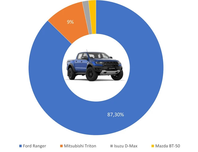 Theo báo cáo của Hiệp hội các nhà sản xuất ô tô Việt Nam (VAMA), doanh số bán hàng Ford Ranger của toàn thị trường trong tháng 04/2022 đạt 1.433 chiếc, tăng 54,4% so với tháng trước, đây cũng mẫu xe duy nhất trong phân khúc có mức tăng trưởng trong tháng 4. Trong khi đó, cả 3 mẫu xe còn lại là Mitsubishi Triton, Isuzu D-Max, Mazda BT-50 chỉ bán được tổng cộng 209 chiếc và đều giảm doanh số so với tháng 3.