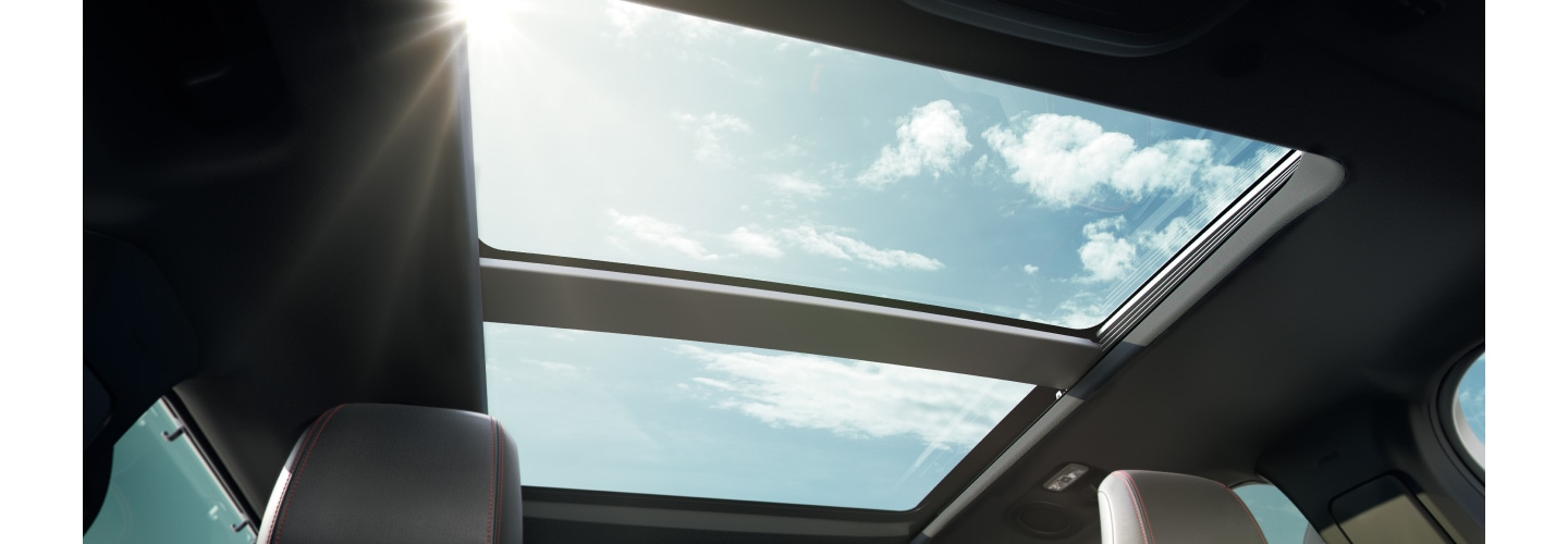 Xe sở hữu cửa sổ trời toàn cảnh cỡ lớn, tăng cường ánh sáng cho không gian nội thất vốn đã rất rộng rãi, giúp hành khách hòa mình vào thiên nhiên.