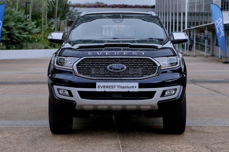 Bắt đầu từ phía trước, Ford Everest mới có lưới tản nhiệt rộng hơn, và hốc hút gió lớn hơn trên cản dưới. Và trong khi đèn chạy ban ngày trên mô hình cũ chỉ bao quanh phần dưới và bên của đèn pha, thì mô hình mới có đèn chạy ban ngày hình chữ C bao phủ hoàn toàn đèn pha.